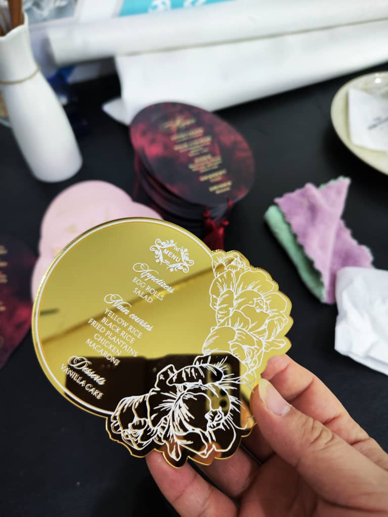 send your wording what to write designer will show a soft copy of your wording after proofing send 50% advance rest before delivery